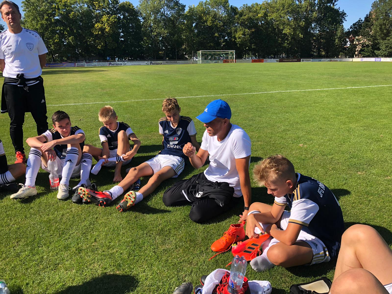 Wir waren die klar spielbestimmende Mannschaft in der 1. HZ (wer hätte das gedacht) und sind mit einem verdienten 1:0 in die Pause gegangen. Jannick hat nach einem bemerkenswerten Solo 3 Ansbacher aussteigen lassen, um dann auch noch das Tor selber zu machen. Puh...es waren die vielleicht besten 35 Minuten dieser C1, in denen wir unter Wettkampfbedingungen vieles sehen konnten, was unsere Spieler im Training regelmäßig über sich ergehen lassen müssen: Tempo, schnelles Umschalten, druckvolles Spiel, Laufwege, Abstände, Raumaufteilung, Ballverarbeitung unter Druck,.... und die Liste könnte noch 1-2 Zeilen so weiter gehen....alles schien gelaufen....