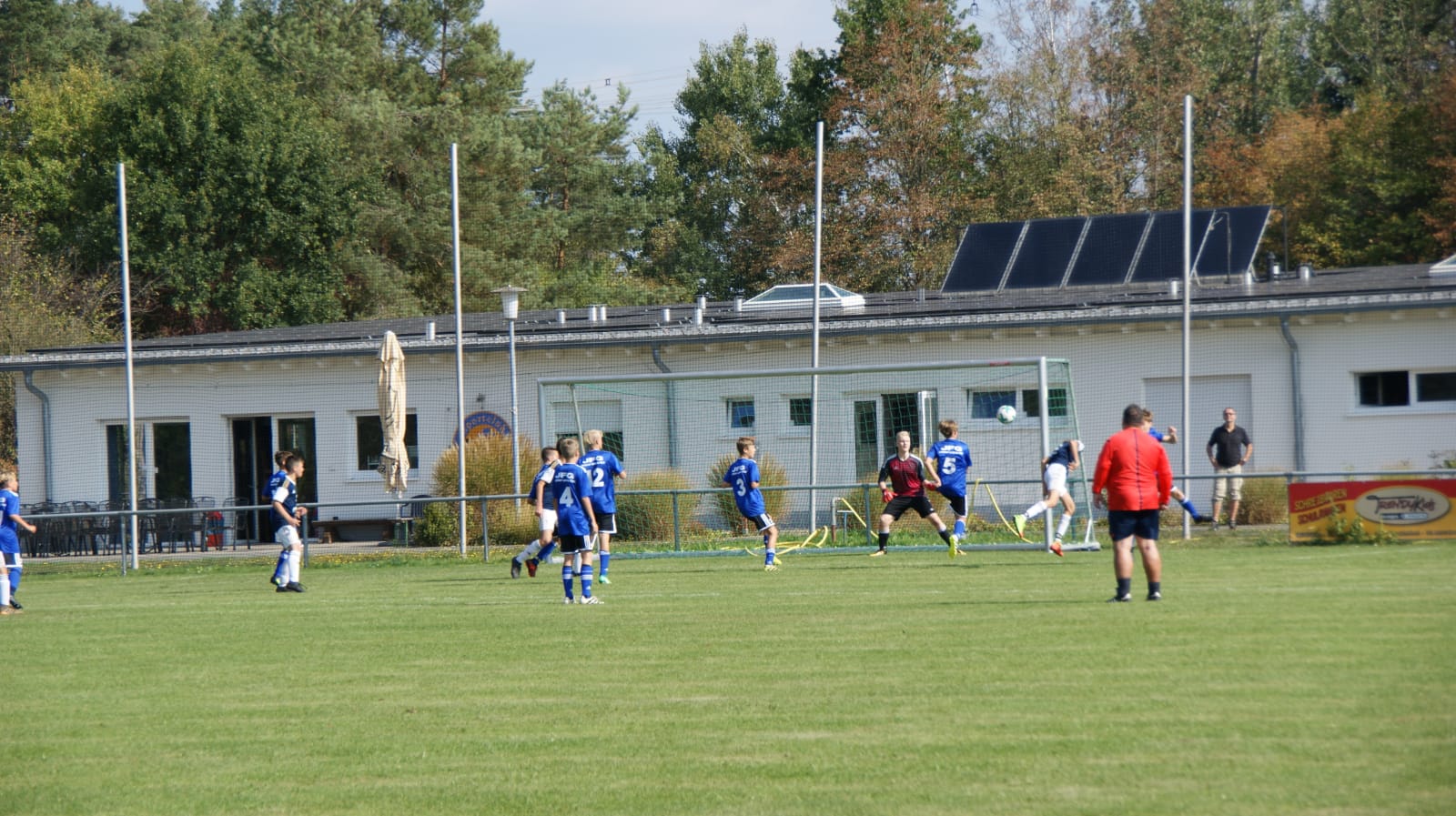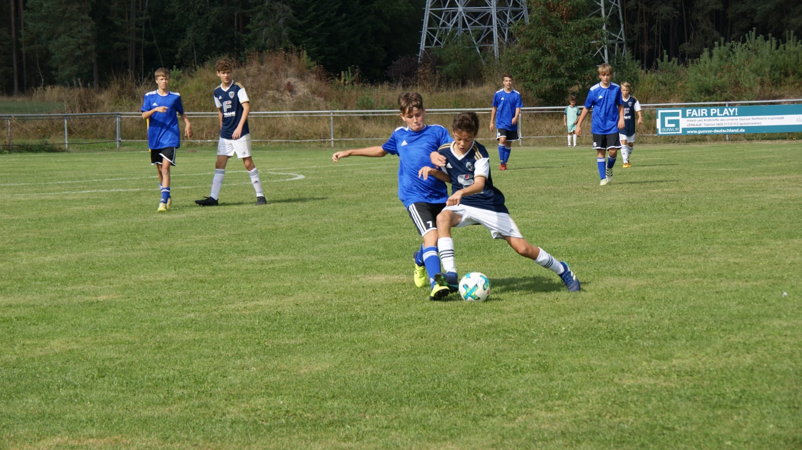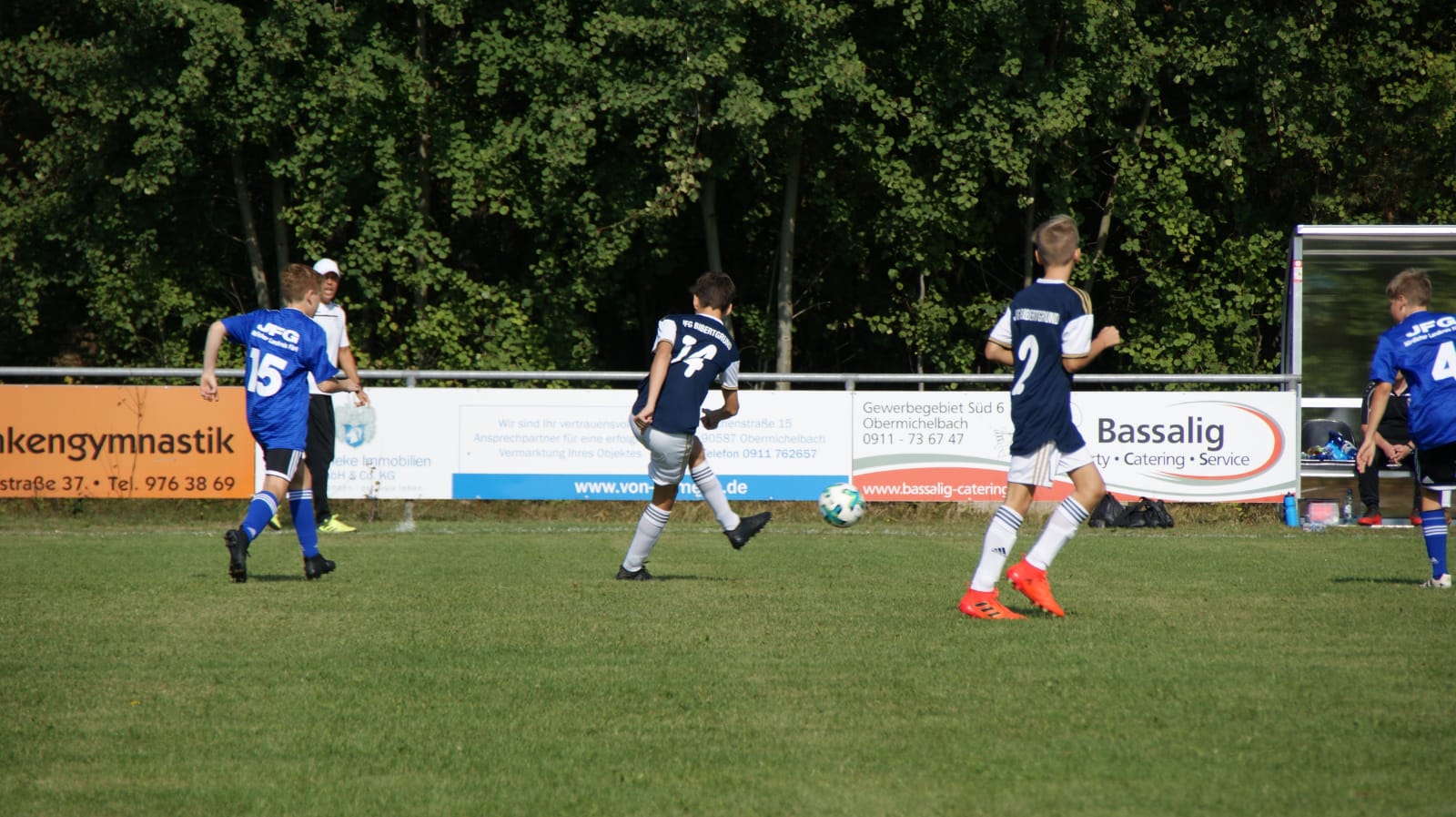 Obwohl das letzte Hinrundenspiel ausfällt, ist es an der Zeit ein Resümee zu ziehen. 8 Spiele, davon 4 Siege und 4 Niederlagen. 12 Punkte, Platz 4 von 10 Mann-schaften. Besser als wir uns dies vor Saisonstart vorgestellt hatten, aber schlechter als es möglich gewesen wäre. Wir sind mit einem Kader in die Saison gestartet, der nahezu vollständig mit Spielern aus dem Jahrgang 2005 bestand. Dieser muss sich mit Spieler in der C-Jugend messen, die bereits ein Jahr älter sind (Jahrgang 2004) und sich schon auf dem Großfeld akklimatisiert haben. Die Spieler konnten diesen Altersunterschied zeitweise gut kompensieren, in manchen Spielen aber nicht über die volle Spieldauer. Das 1. Spiel konnten wir gegen die JFG Nördlichen Landkreis 2:1 gewinnen. Das erste Heimspiel verloren wir leider nach einer leidenschaftlichen 2. Halbzeit mit 0:1 gegen die SG Losaurauch/Markt Erlbach. Im nächsten Spiel gab es eine verdiente 0:3 Niederlage bei der TSC Neuendettelsau. Gerade in diesem Spiel hat man noch unsere Unerfahrenheit und fehlende körperliche Robustheit gemerkt. In beiden verlorengegangen Partien hat sich die Mannschaft jedoch „gewehrt“ und nicht aufgesteckt. Gerade solche Partien haben aber unsere Schwächen aufgezeigt an denen wir nun für die Rückrunde und vor allem für die neue Saison, in der wir dann die „Alten“ sind, arbeiten müssen. Nach den zwei Niederlagen war es um so wichtiger, wieder ein Erfolgserlebnis zu schaffen. Dies gelang der Mannschaft eindrucksvoll. Die SG Quelle III wurde mit 3:0 besiegt. Eine über 70 Minuten gelungene Vorstellung. Unser Auswärtsspiel bei der SG Cadolzburg/Ammerndorf konnten wir nach einer erheblichen Steigerung nach der Halbzeit doch noch mit 2:1 gewinnen. Beim ungefährdeten, verlustpunktfreien Spitzenreiter SVG Steinachgrund gab es eine 1:4 Niederlage. Die Mannschaft hat dabei aber alles in die Waagschale geworfen und die von uns viel beschworene positive Mentalität gezeigt. Andere Mannschaften wurden hier auch schon „zweistellig“ auf die Heimreise geschickt. Nach dieser guten Leistung erfolgte - warum auch immer - unsere mit Abstand schlechteste Mannschaftsleistung. Wir verloren verdient mit 2:6 gegen die SG Dietenhofen/Heilsbronn. Trainer, Zuschauer, Eltern und auch die Spieler konnten sich diese schlechte Leistung nicht erklären. Aber so ist Fußball, so etwas hat es immer schon gegeben und es wird wieder passieren. Im anschließenden Nachholspiel gegen die SG Baudenbach gab es unter Flutlicht einen 5:0 Erfolg. Dieser war verdient, aber nicht mit Glanz umspült. Wir haben in der Hinrunde viel Positives gesehen. Die Defensive steht gut, das Mittelfeld ist bemüht, der Angriff muss aber noch zielstrebiger werden. Die Jungs ziehen im Training gut mit, die konditionelle Basis stimmt bei den meisten.